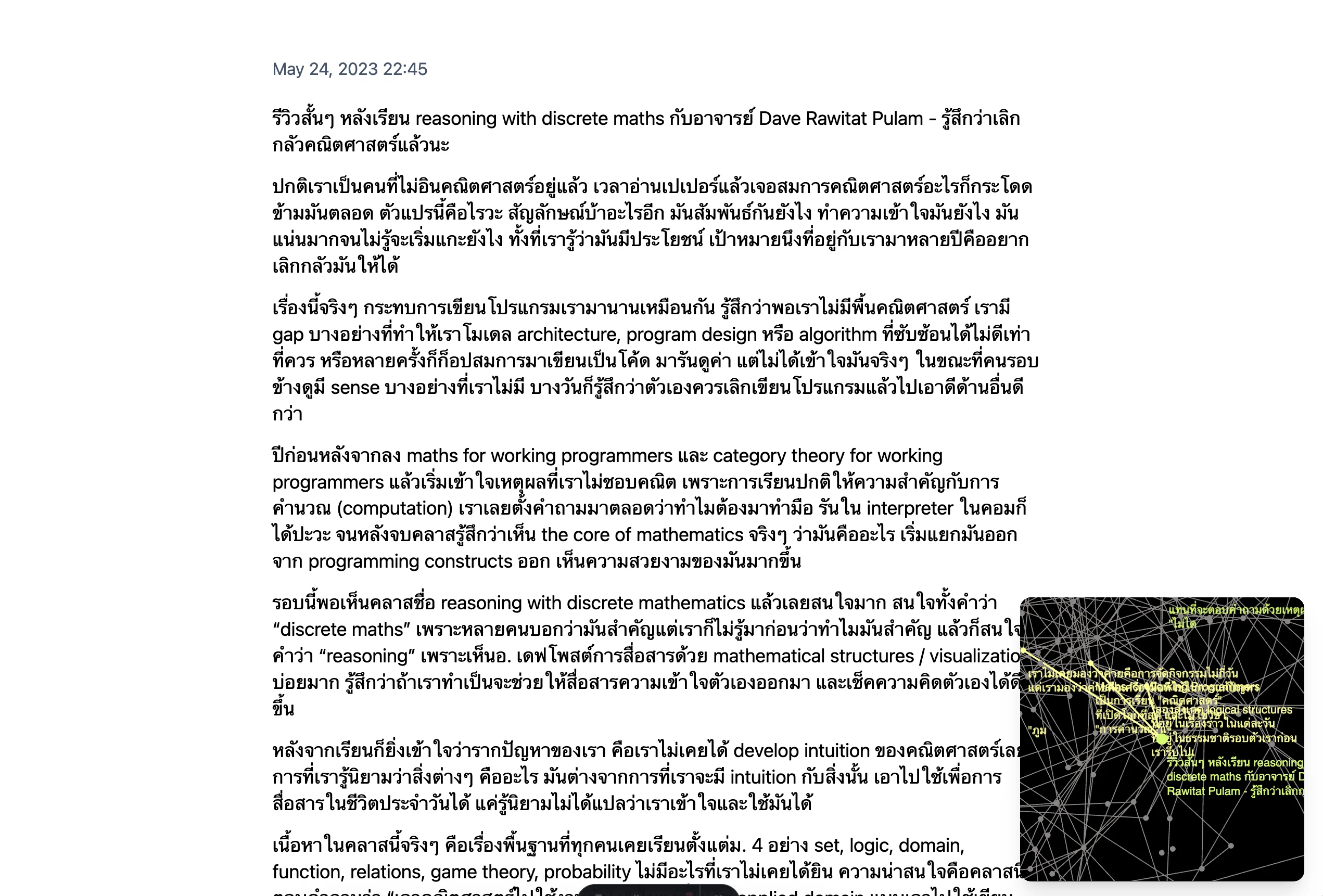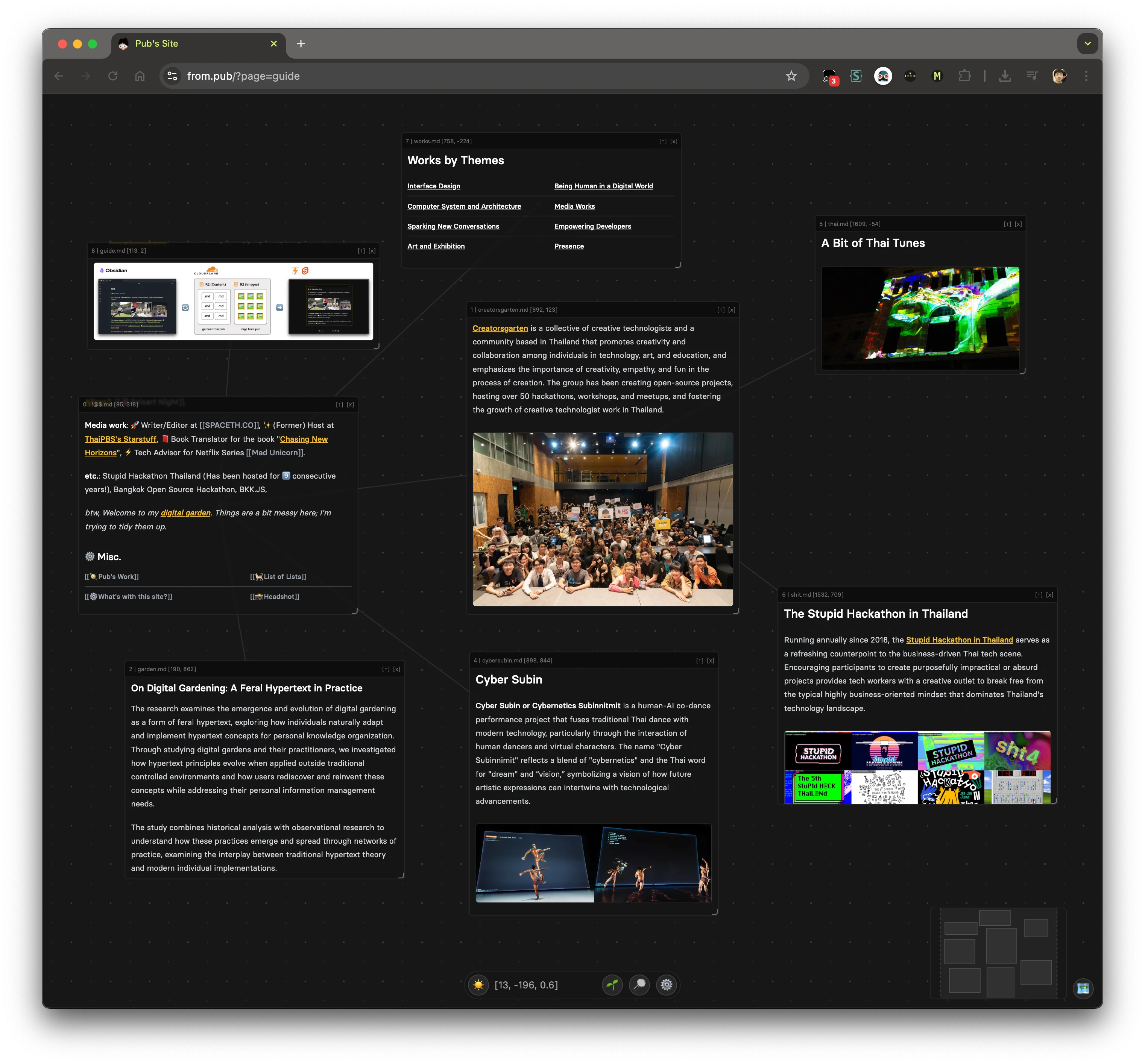 - Obsidian vault: Poom uses Obsidian for text-based knowledge management and publishes some notes to his digital garden.